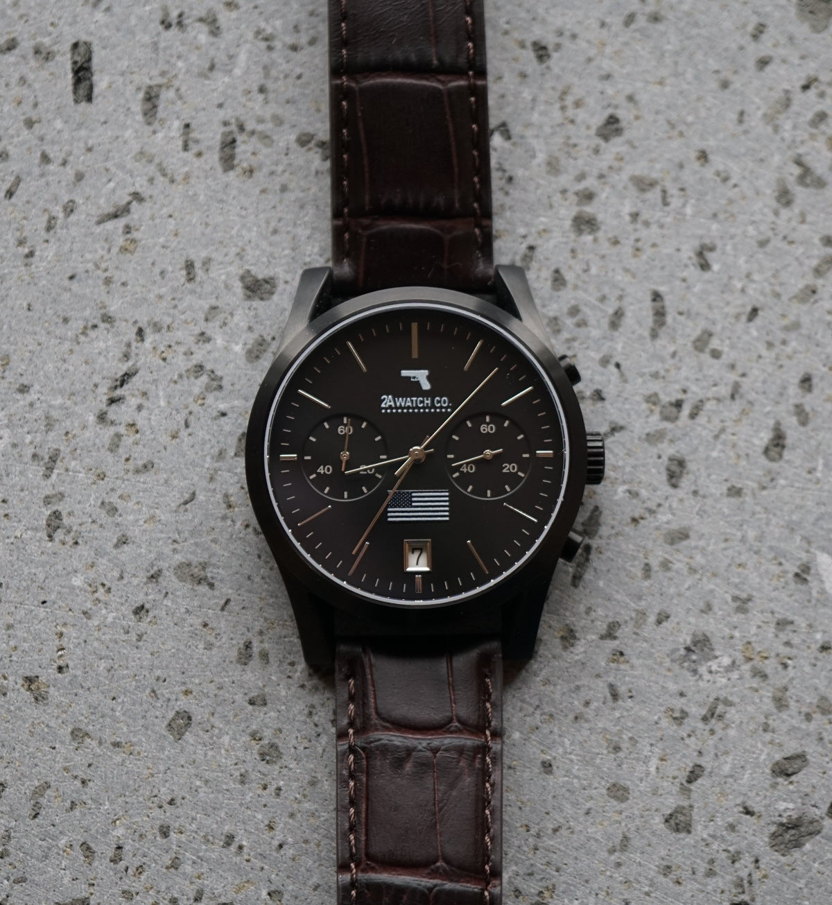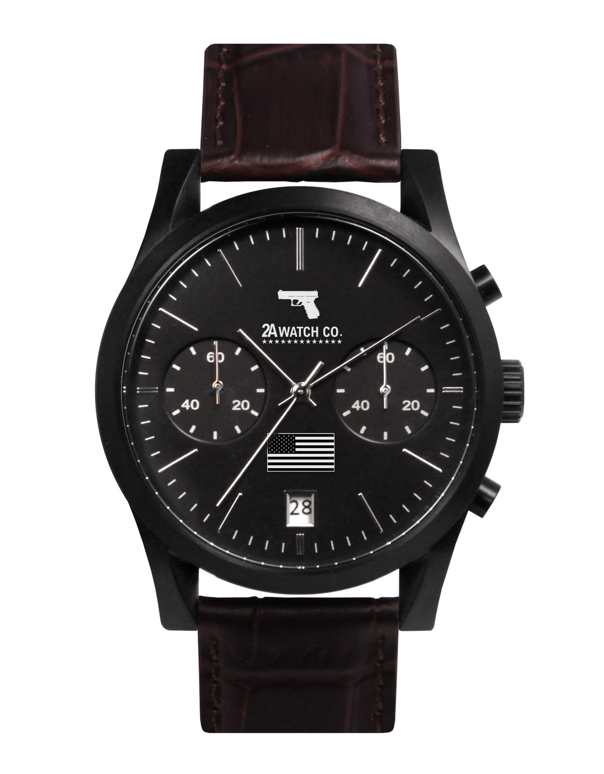 Wear your pride for this country and support our God-given rights and freedoms. This sleek 2A branded firearm chronograph is perfect for any lifestyle.